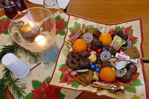Wie in jedem Jahr gab es auch diesmal zum Jahresabschluss eine Weihnachtsfeier in der prallgefüllten Aula des Wilhelm-Heinrich-Riehl-Kollegs. Ein reichhaltiges Buffet, Glühwein und ein kleines Programm aus Weihnachtsliedern, Poetry-Slam und Klavierkunst sorgten für Abwechslung.