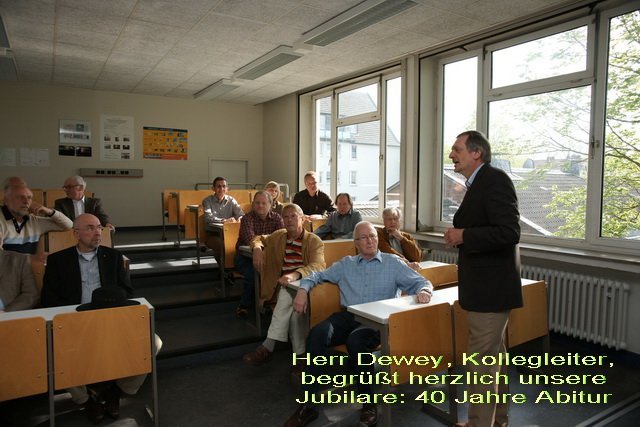 Wir haben uns am 24. April 2010 im - für uns "neuen" - Riehl-Kolleg getroffen. Dort wurden wir vom Schulleiter, Herrn Dewey, und unserem ehemaligen Mathematiklehrer, Herr Klaus Flügel, herzlich empfangen und durch die Schule geführt. Zur Freude aller konnten wir Einblick in unsere Abiturarbeiten nehmen.